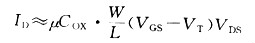當(dāng)VDS處于OV左近時(shí),精確地說(shuō),是當(dāng)VDS《2(VGS-VT)時(shí),式(1.1)右邊的第2項(xiàng)能夠疏忽不計(jì),能夠近似為下式: