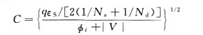 其中,εs≈1.04pF/cm表示硅的介電常數(shù)(shù),εs≈εoKs,這里εo表示自由空間( FreeSpace)的介電常數(shù)(shù)(εo≈8.86X10-14F/cm);Ks≈ll.7表示硅的相對(duì)(duì)介電常數(shù)(shù)(有時(shí)(shí)為了簡(jiǎn)單也稱為介電常數(shù)(shù));Na(Nd)表示每立方厘米中受主原子(施主原子)的數(shù)(shù)量。