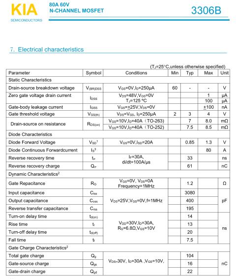 KIA100N03A、KIA3306A、KIA3306B、KIA4706A等