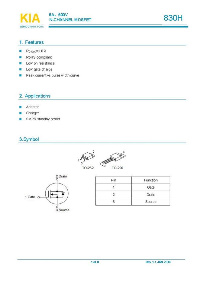 參數(shù)(shù): ID(A): 5 BVDSS(V): 500 RDS(ON): 1.2 Qg(nC): 20 Package: TO-220、TO-252