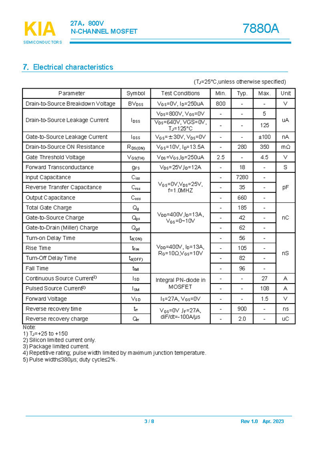 參數(shù)(shù): ID(A): 27 BVDSS(V): 800 RDS(ON): 280mΩ Qg(nC): 185 Package: TO-264