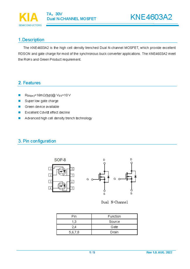參數(shù): ID(A): 7 BVDSS(V): 30 RDS(ON): 16mΩ Qg(nC): 4.9 Package: SOP-8