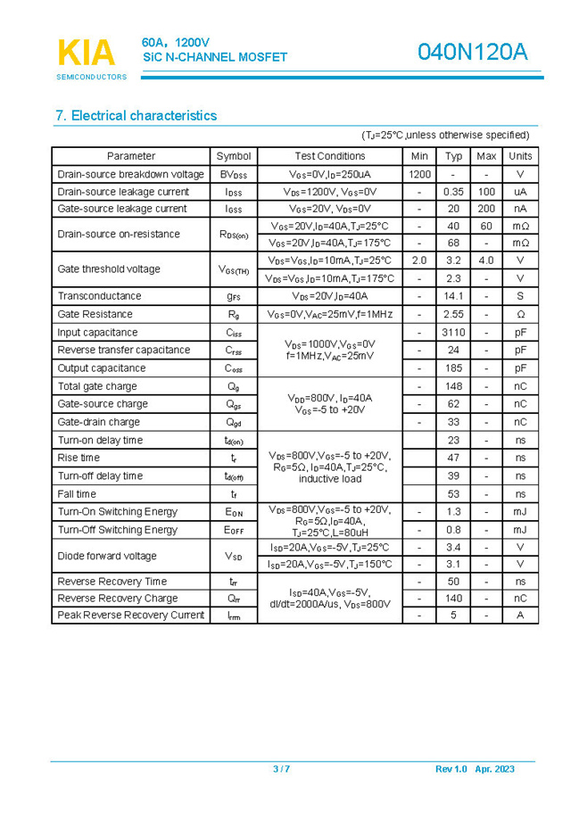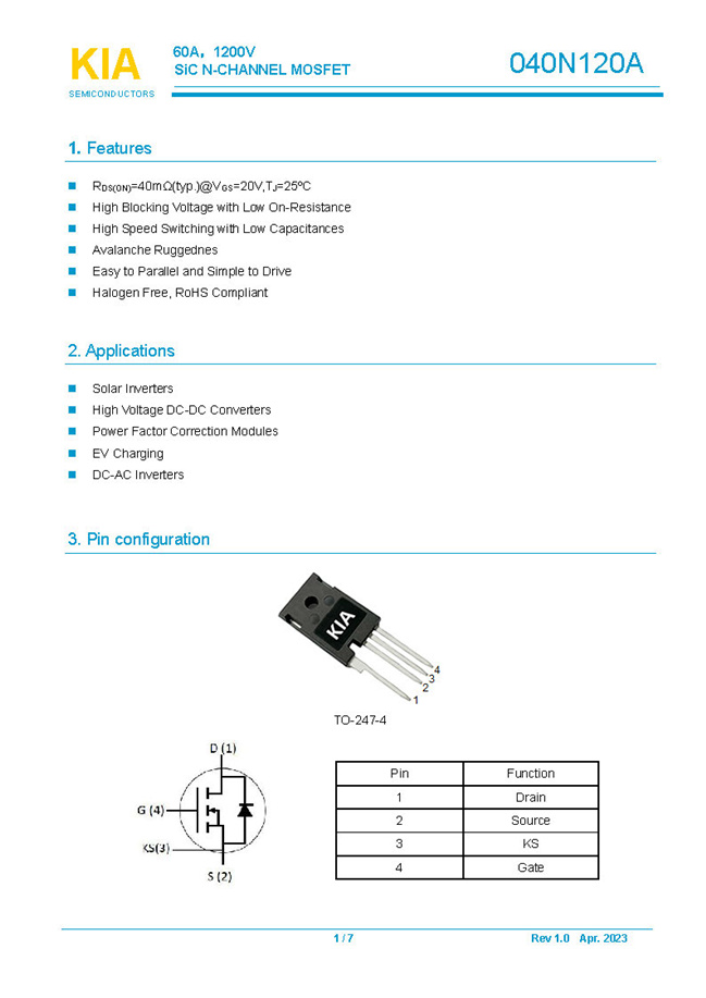 參數(shù): ID(A): 60 BVDSS(V): 1200 RDS(ON): 40mΩ Qg(nC): 148 Package: TO-247-4