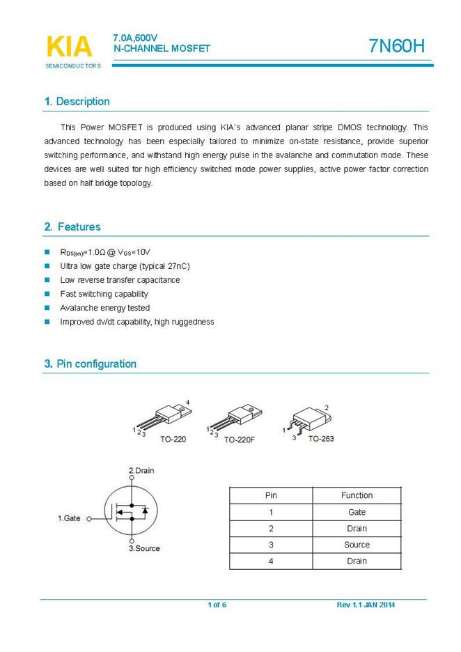 參數(shù)(shù): ID(A): 7 BVDSS(V): 600 RDS(ON): 1.2 Qg(nC): 27 Package: TO-263、TO-220、TO-220F