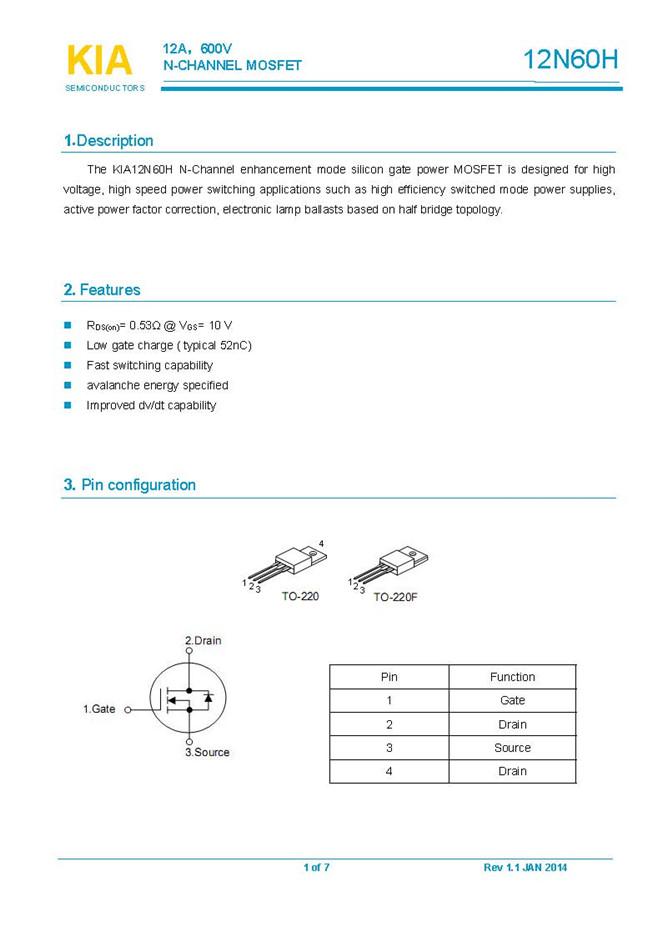 參數(shù): ID(A): 12 BVDSS(V): 600 RDS(ON): 0.65 Qg(nC): 52 Package: TO-220、TO-220F