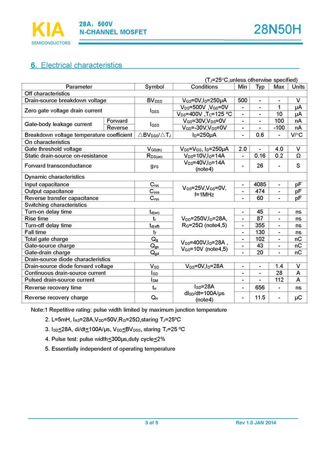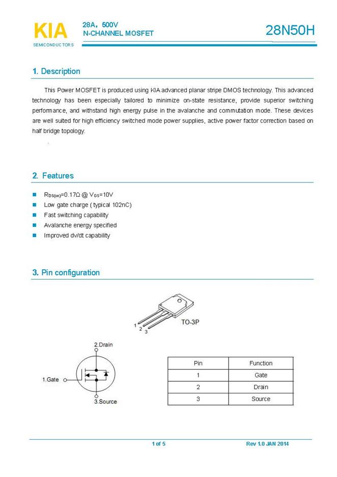 參數: ID(A): 28    BVDSS(V): 500    RDS(ON): 0.2    Qg(nC): 102    Package: TO-3P、TO-247